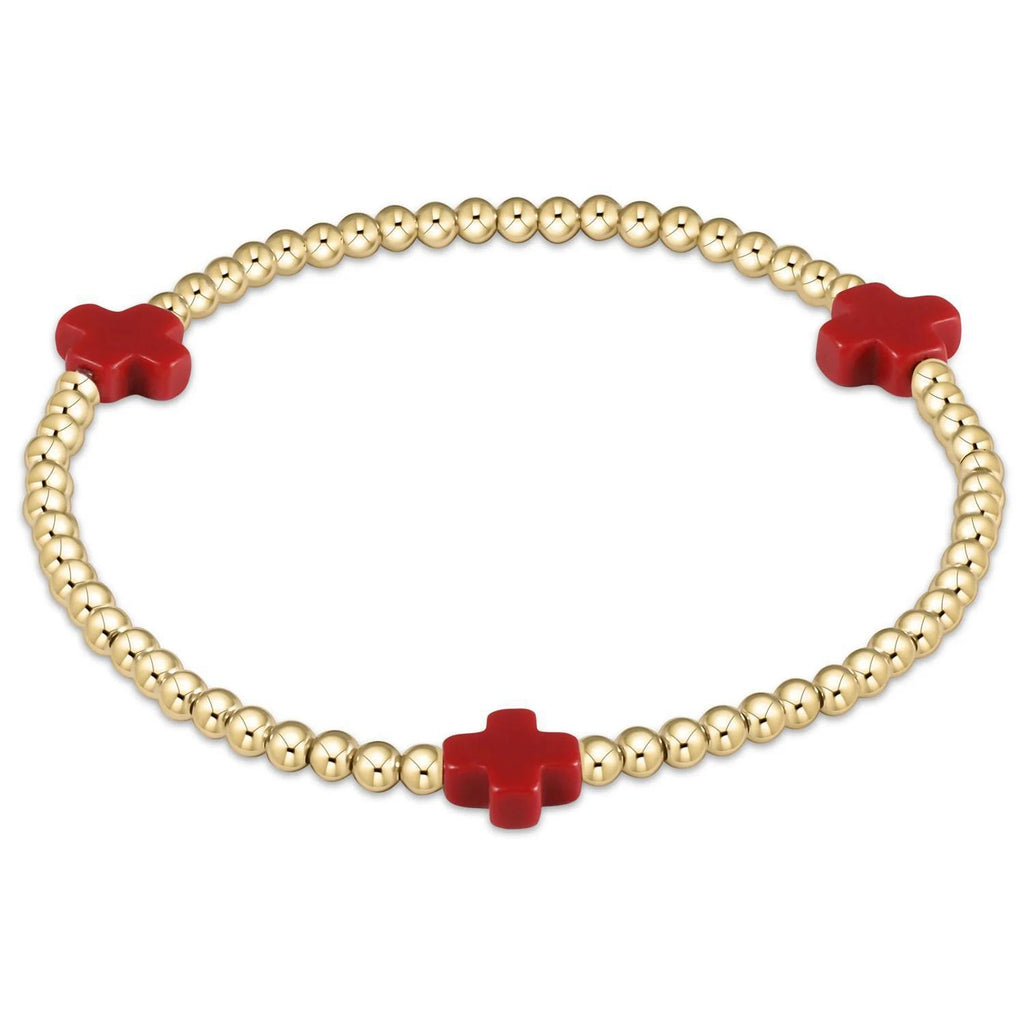 • Signature Cross Gold Pattern 3Mm Bead Bracelet - Red